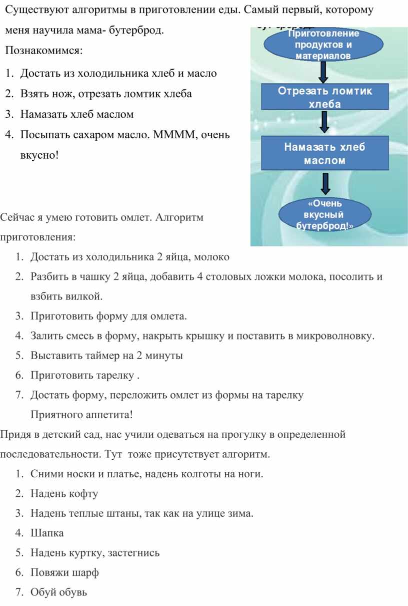 Придя в детский сад, нас учили одеваться на прогулку в определенной последовательности. Тут тоже присутствует алгоритм.