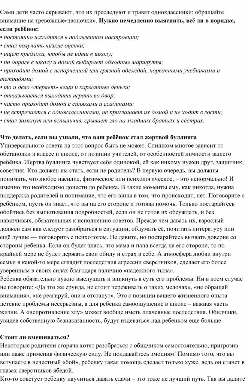 «буллинг», обозначить основные признаки того, что ребенок подвергается