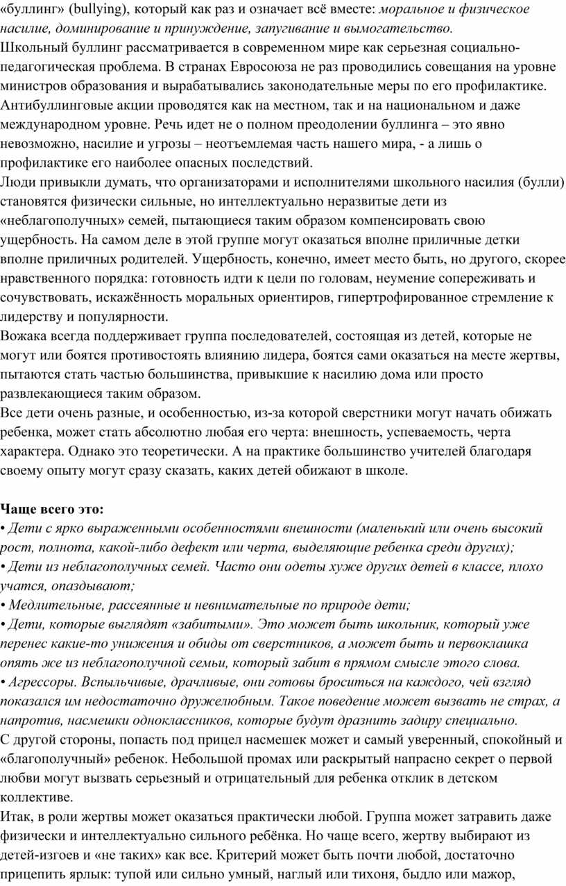 И. В. Волкова, С. В. Кривцова) буллинг рассматривается как форма насилия,
