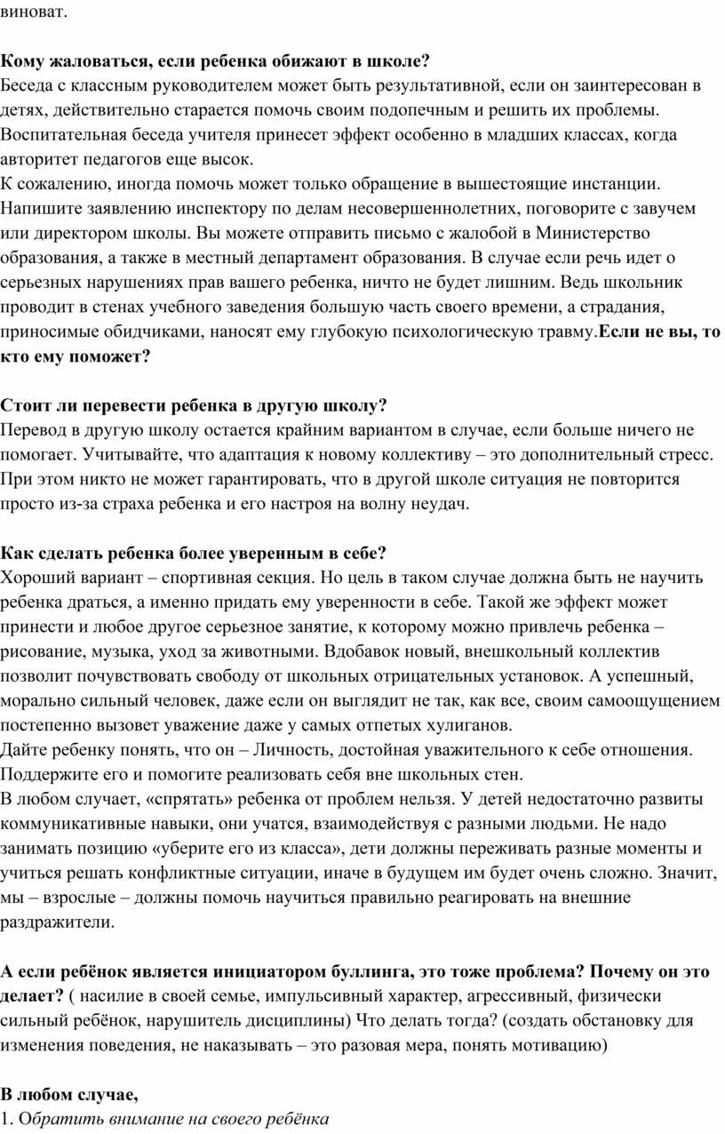 сделает только хуже, ведь он станет в глазах сверстников ябедой.