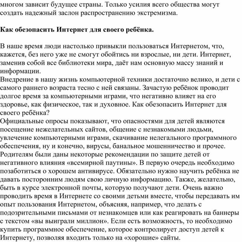 защите детей от негативного влияния «всемирной паутины». В первую очередь