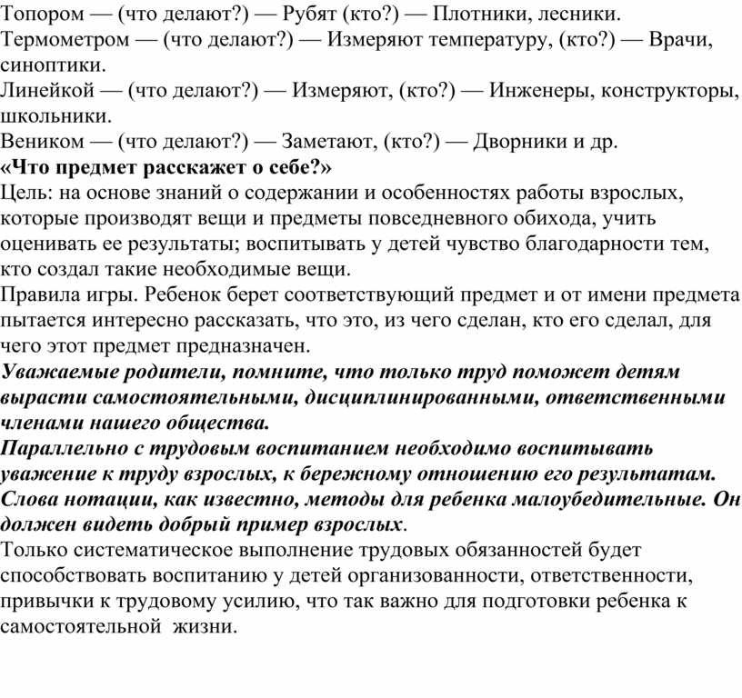 особенностях работы взрослых, которые производят вещи и предметы повседневного