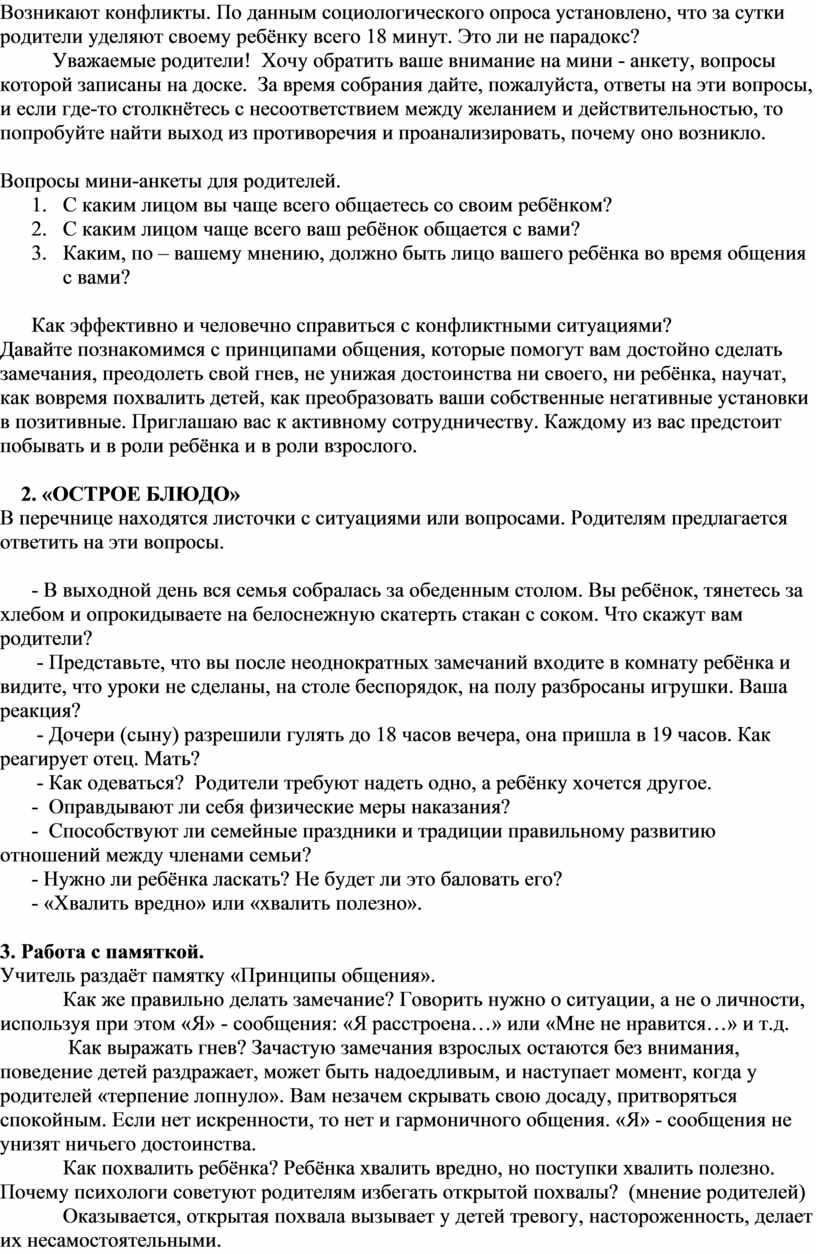 Цель: определить значение общения для детей и взрослых; выявить особенности взаимоотношений между детьми и родителями; рассмотреть проблемы взаимоотношений родителей и детей, провести обсуждение по теме собрания.