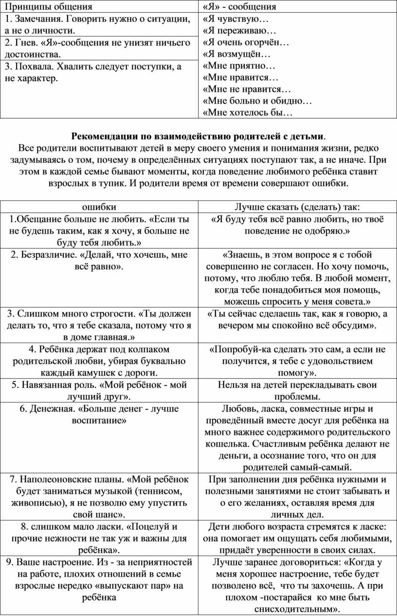 Рекомендации по взаимодействию родителей с детьми.