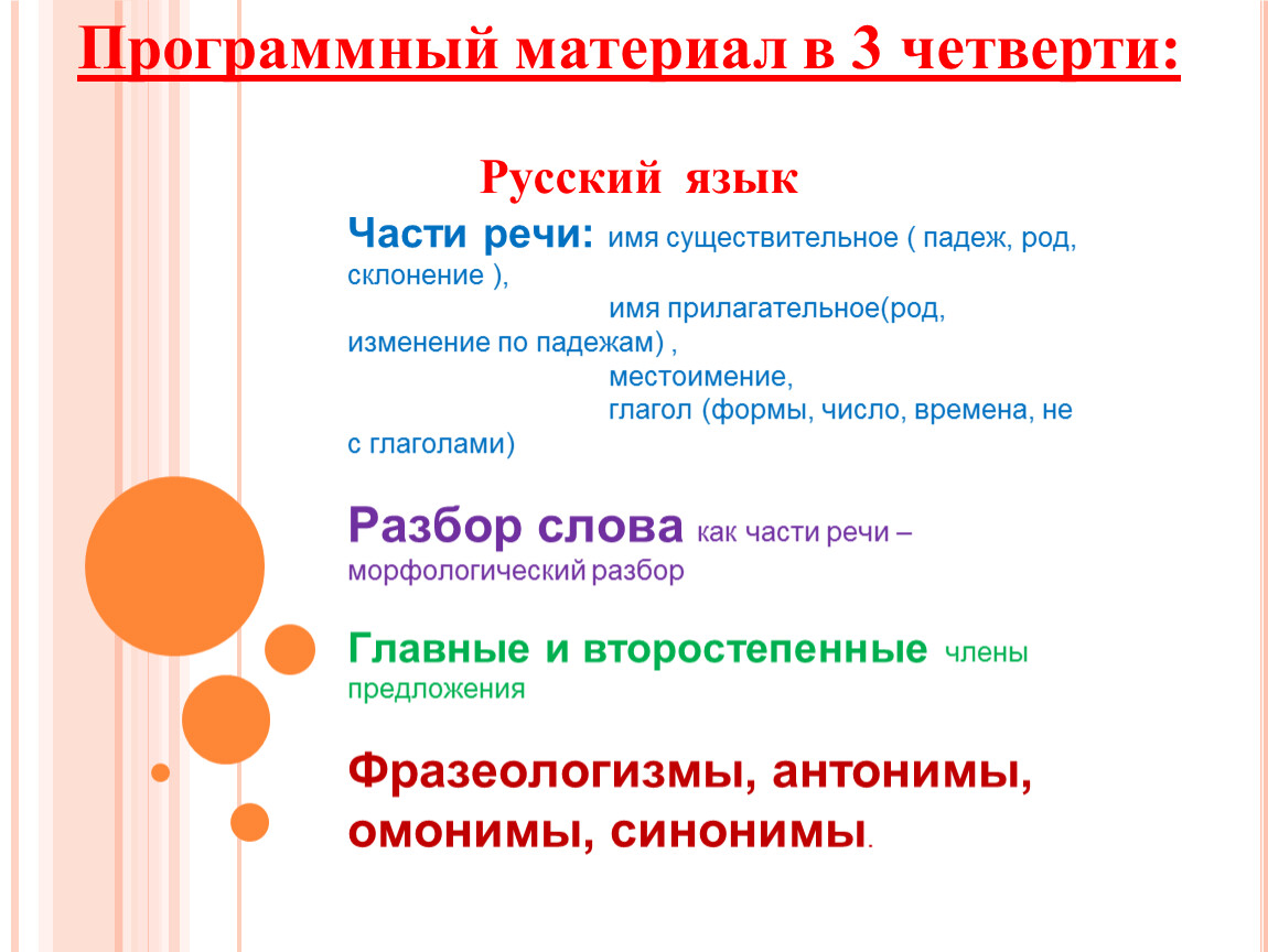 Программный материал в 3 четверти: