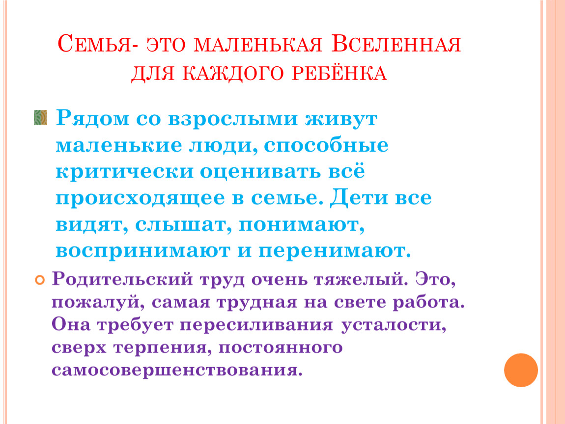 Семья- это маленькая Вселенная для каждого ребёнка