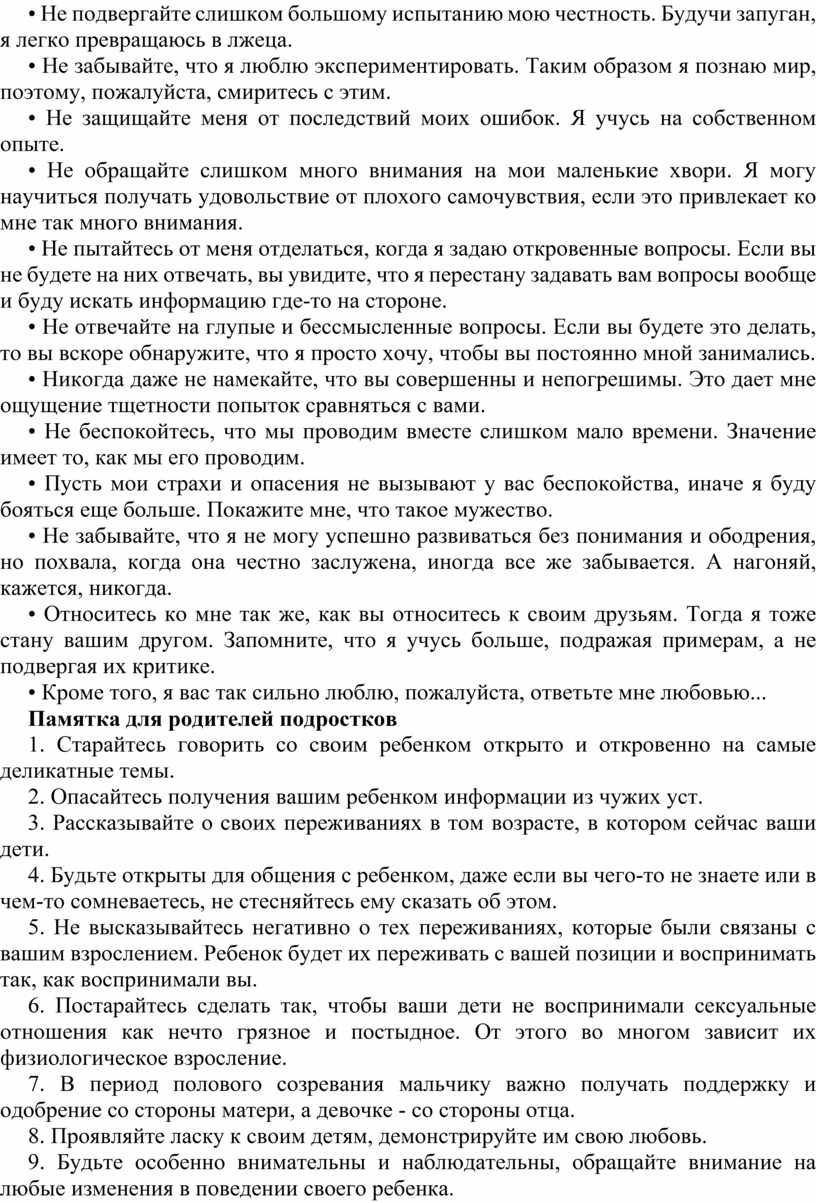 7. Помните, что вы тоже были детьми, совершали ошибки; дети ждут от вас этого признания, возможно, ваш личный пример поможет им разобраться в себе.