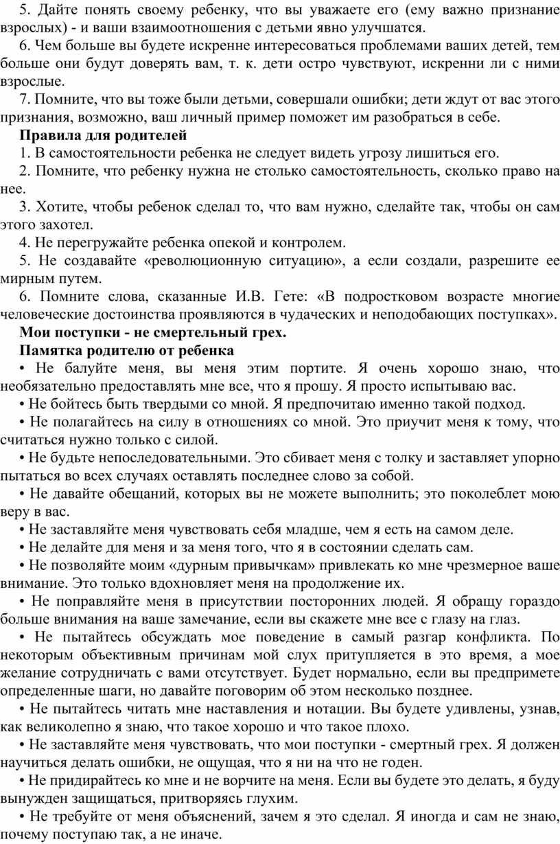 6. Помните слова, сказанные И.В. Гете: «В подростковом возрасте многие человеческие достоинства проявляются в чудаческих и неподобающих поступках».