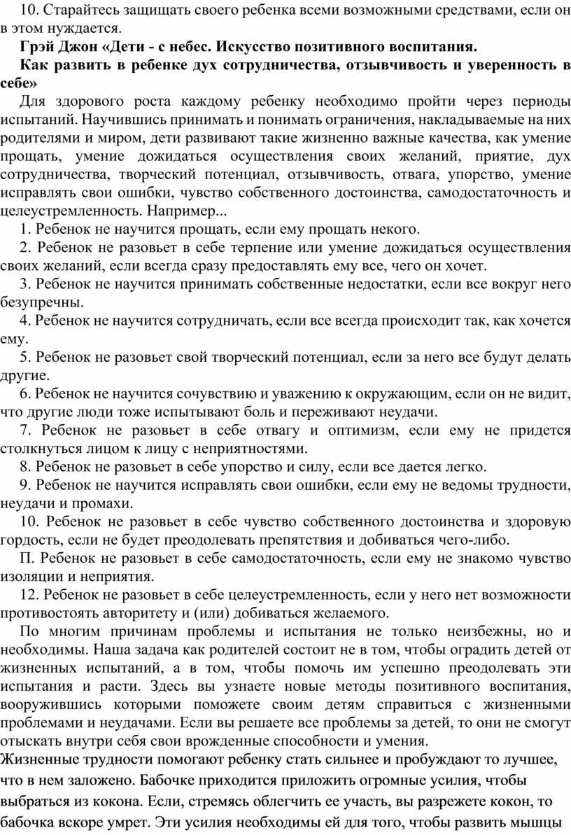 • Относитесь ко мне так же, как вы относитесь к своим друзьям. Тогда я тоже стану вашим другом. Запомните, что я учусь больше, подражая примерам, а не подвергая их критике.