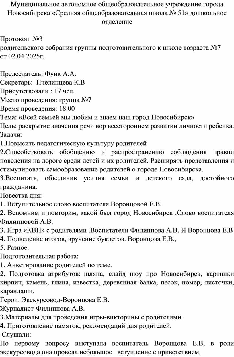 родительского собрания группы подготовительного к школе возраста №7