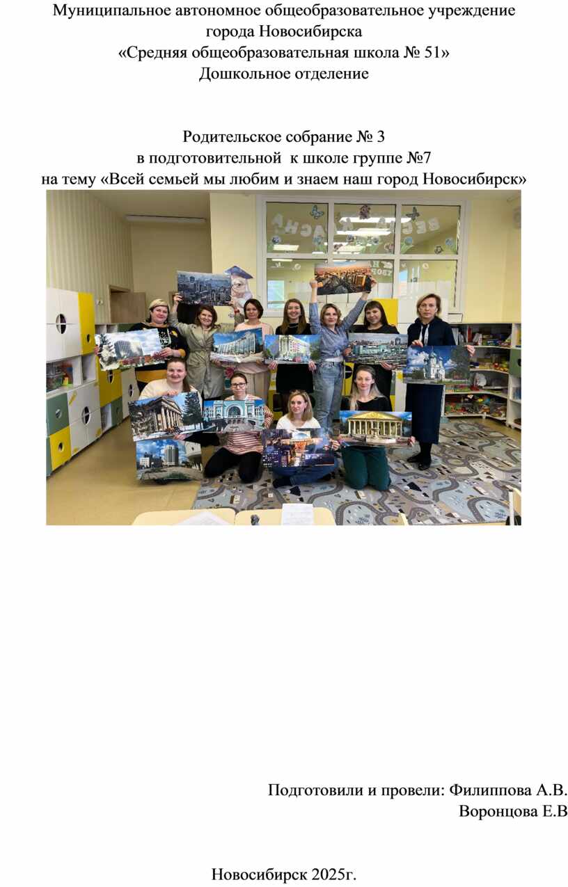 Муниципальное автономное общеобразовательное учреждение города Новосибирска «Средняя общеобразовательная школа № 51» дошкольное отделение