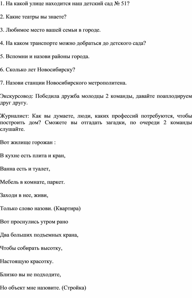 1. На какой улице находится наш детский сад № 51?