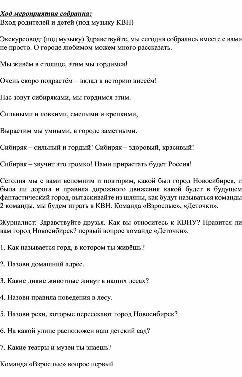 Сегодня мы с вами вспомним и повторим, какой был город Новосибирск, и была ли дорога и правила дорожного движения какой будет в будущем фантастический город, вытаскивайте из шляпы, как будут называться команды 2 команды, мы будем играть в КВН. Команда «Взрослые», «Деточки».