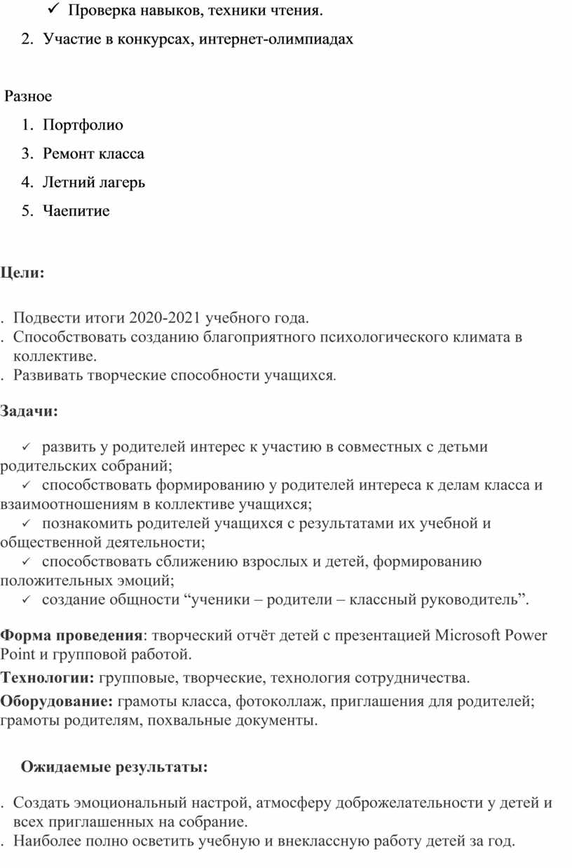 ü познакомить родителей учащихся с результатами их учебной и общественной деятельности;