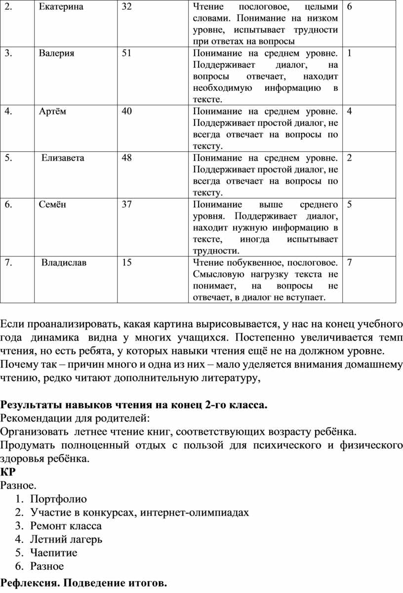 Если проанализировать, какая картина вырисовывается, у нас на конец учебного года динамика видна у многих учащихся. Постепенно увеличивается темп чтения, но есть ребята, у которых навыки чтения ещё не на должном уровне.