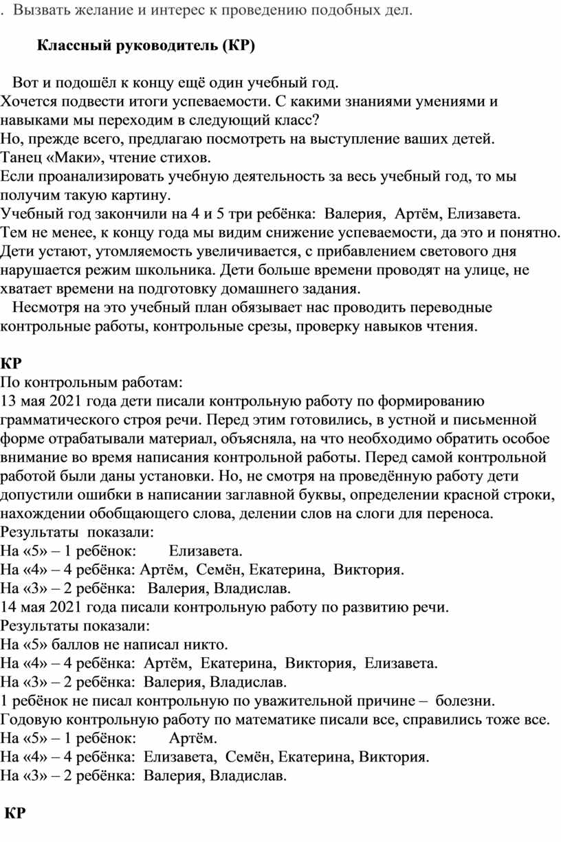2. Наиболее полно осветить учебную и внеклассную работу детей за год.