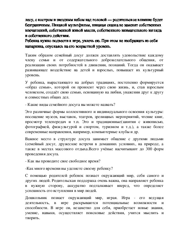 детей в семье. Досуг – это часть внерабочего времени , которая остаётся у