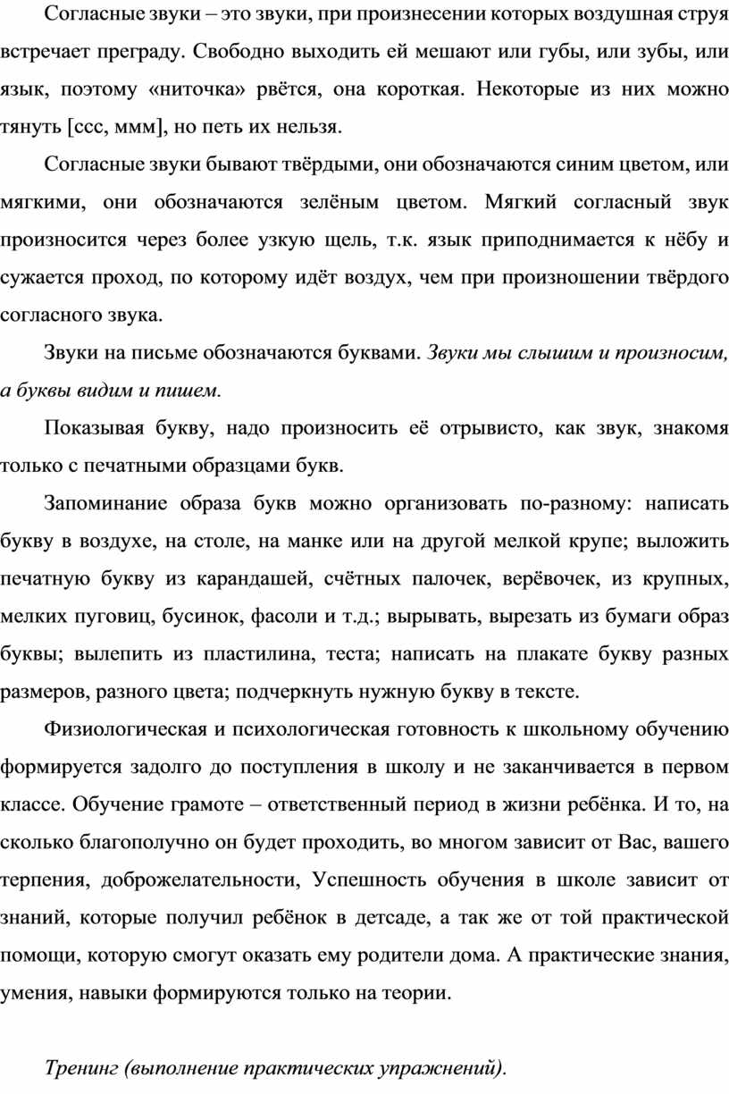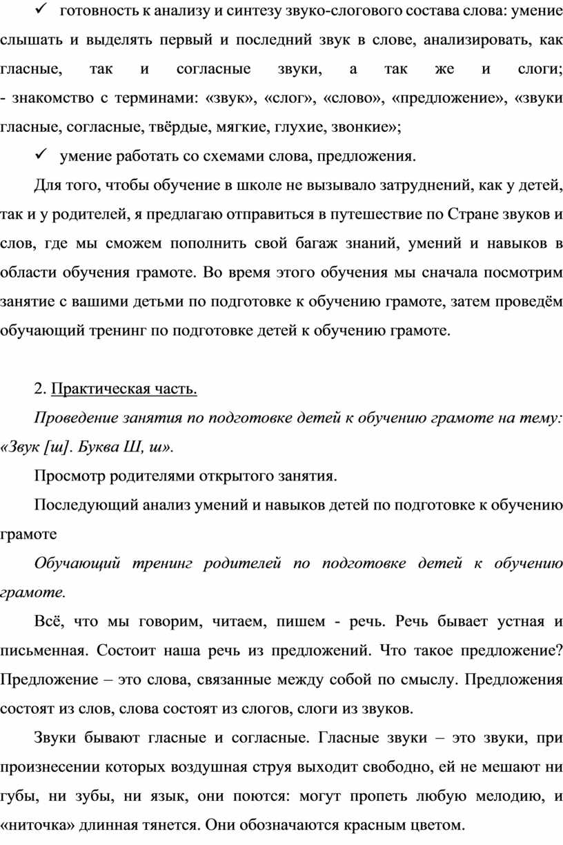 Обучающий тренинг родителей по подготовке детей к обучению грамоте.
