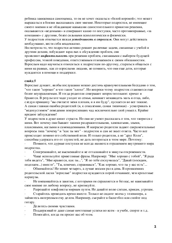 выражаться в боязни высказывать свое мнение. Некоторые подростки, не имеющие