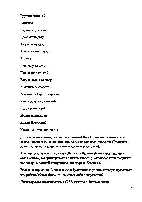 Инсценировка стихотворения С. Михалкова «Строгий отец».