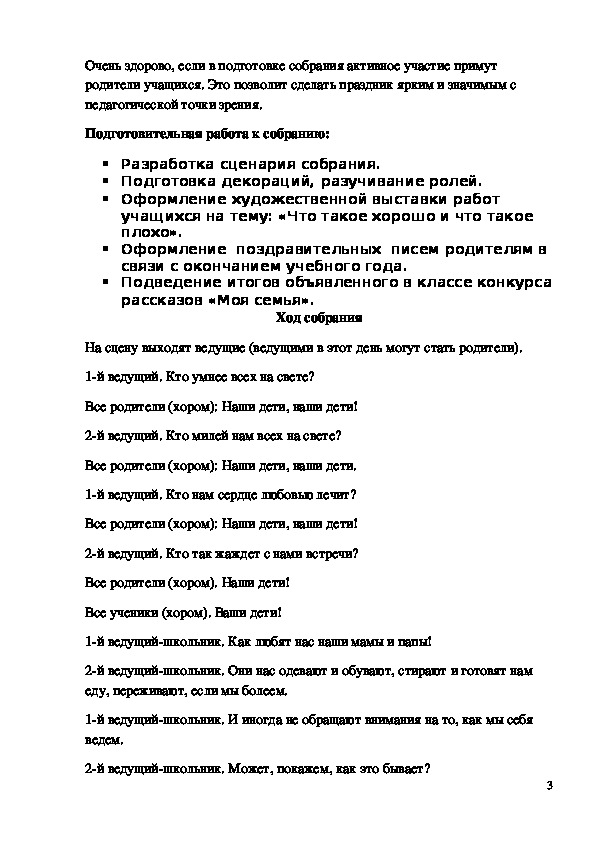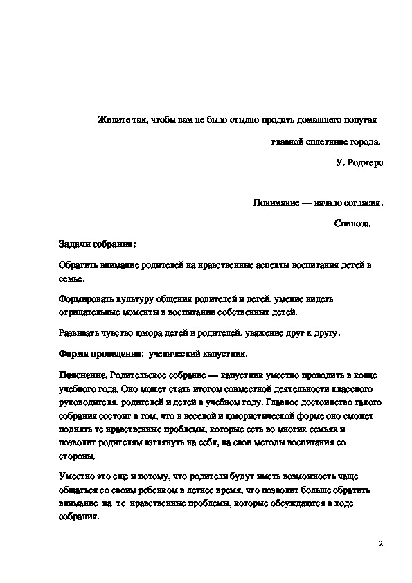 Пояснение. Родительское собрание — капустник уместно проводить в конце