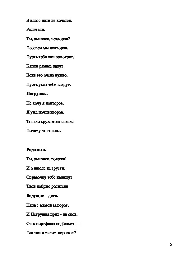 На сцену выходят ведущие (ведущими в этот день могут стать родители).