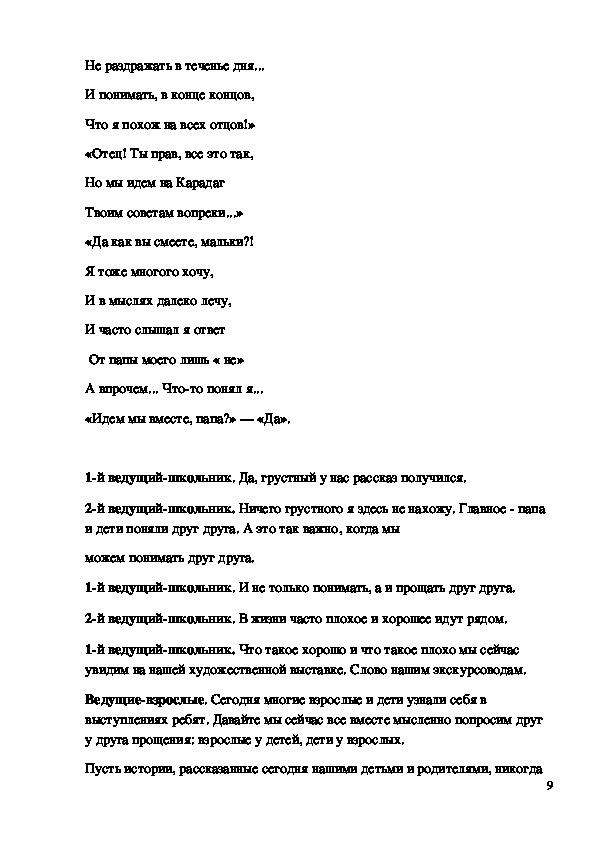 1й ведущийшкольник. И не только понимать, а и прощать друг друга.