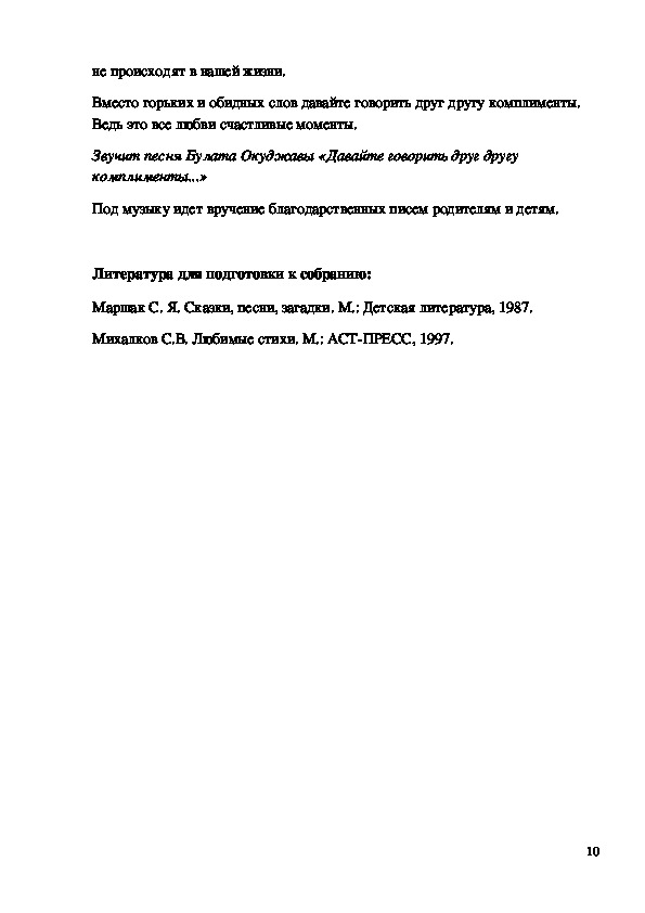 детям и родителям, о которых шла речь в нашем представлении. (Родители и