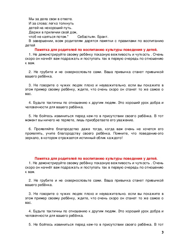 Памятка для родителей по воспитанию культуры поведения у детей.