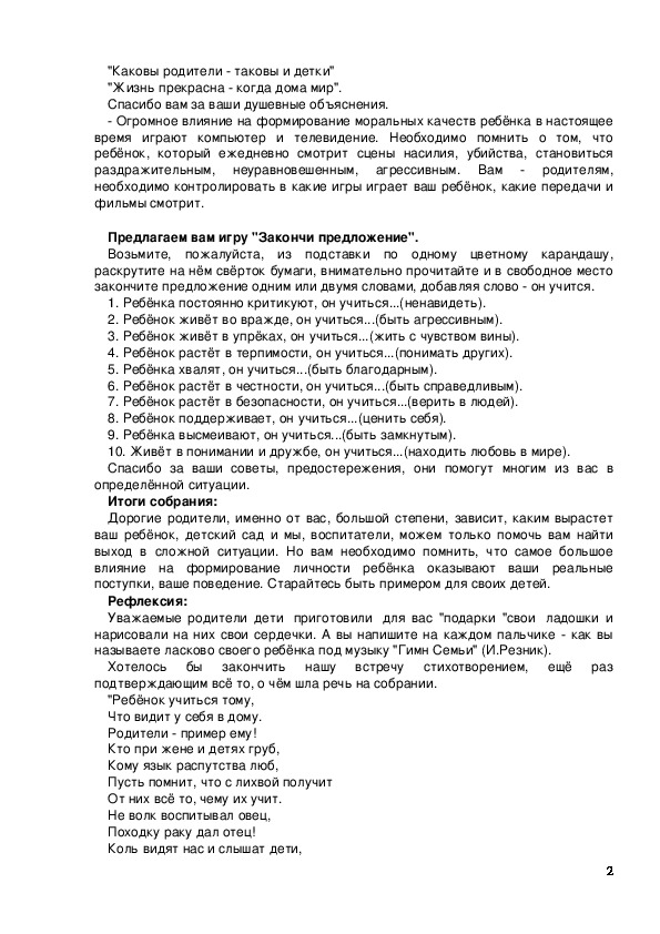 "Характер и нравственное поведение ребёнка это слепок с характера