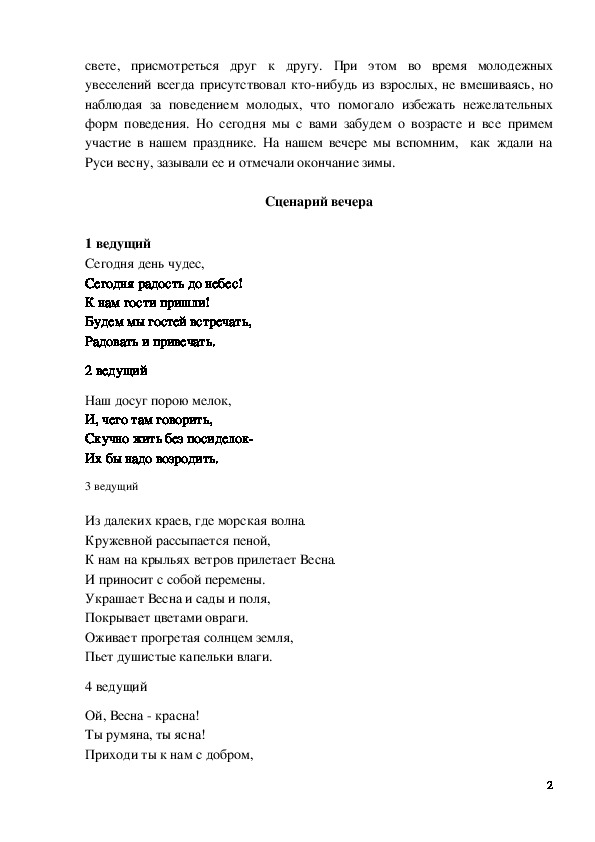 посиделкам. На Руси вечорки или посиделки длились с летопровода (1