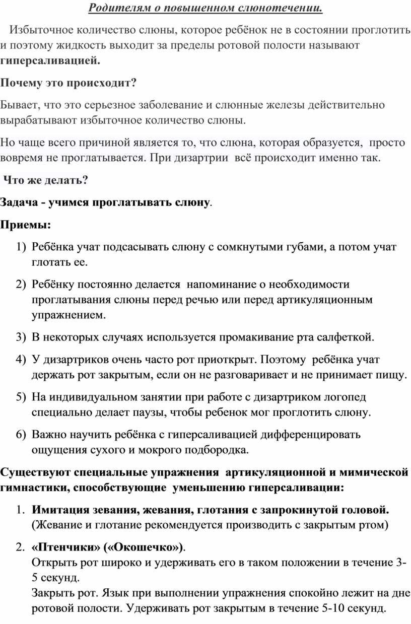 Существуют специальные упражнения артикуляционной и мимической гимнастики, способствующие уменьшению гиперсаливации: