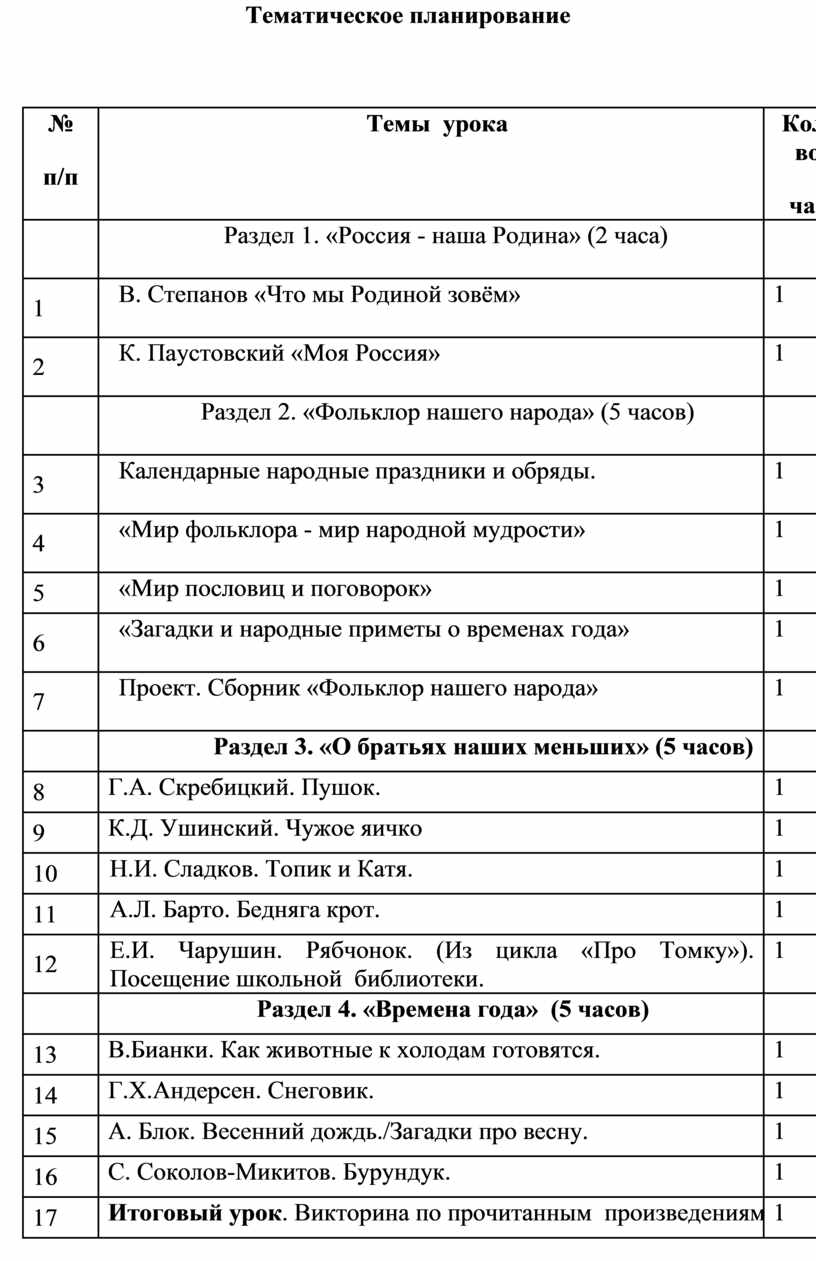 На изучение «Литературного чтения на родном (русском) языке» во 2 классе отводится 17 ч (0,5 ч в неделю, 34 учебные недели).