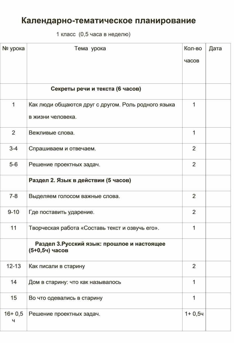 На изучение предмета «Родной язык (русский) в 1 классе отводится 16,5 ч (0,5ч в неделю, 33 учебные недели.