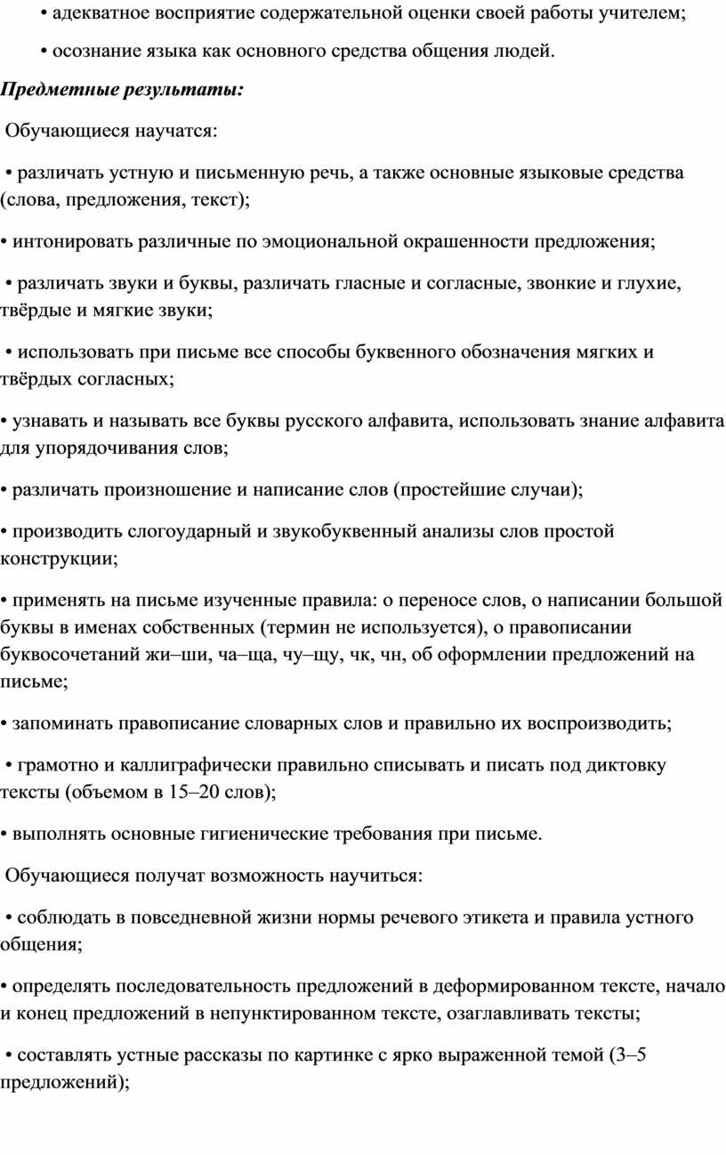• грамотно и каллиграфически правильно списывать и писать под диктовку тексты (объемом в 15–20 слов);