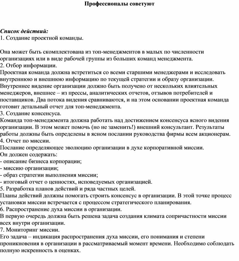 видения организации. В этом может помочь (но не заменить!) внешний консультант.