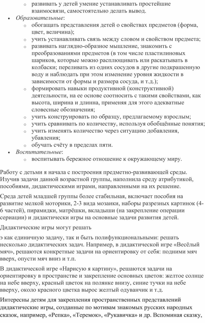 Своим опытом работы по данному направлению поделилась с коллегами своего дошкольного учреждения. Через выставку дидактических игр познакомила с содержанием развивающей среды младшей группы.