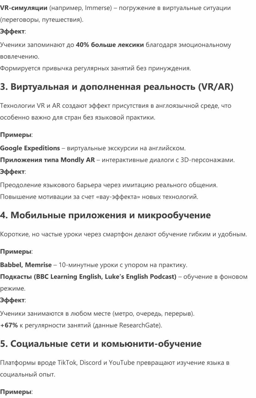 Технологии VR и AR создают эффект присутствия в англоязычной среде, что особенно важно для стран без языковой практики.