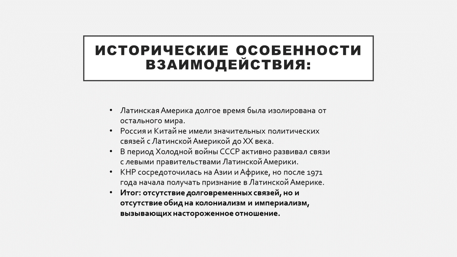 Исторические особенности взаимодействия: