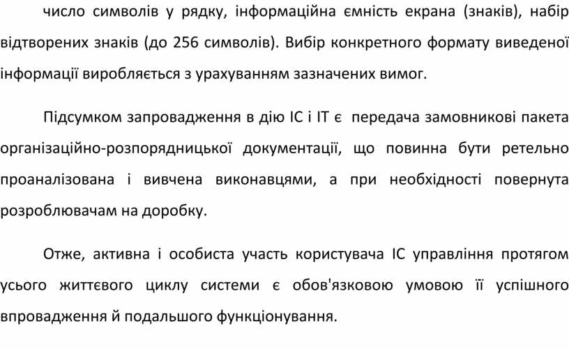 Отже, активна і особиста участь користувача ІС управління протягом усього життєвого циклу системи є обов'язковою умовою її успішного впровадження й подальшого функціонування.