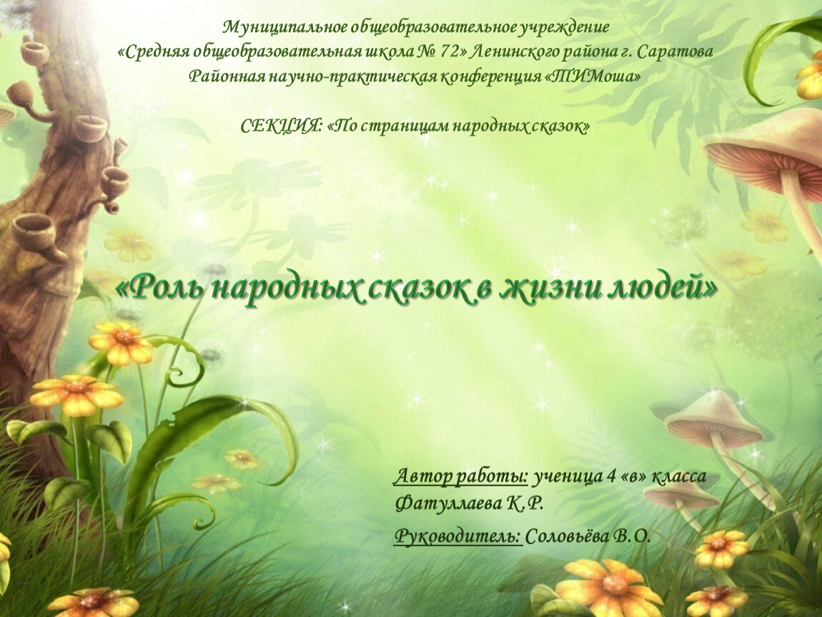 Сказка — это хранилище народной мудрости, черт национального характера, реалий быта минувших дней, общечеловеческих ценностей.