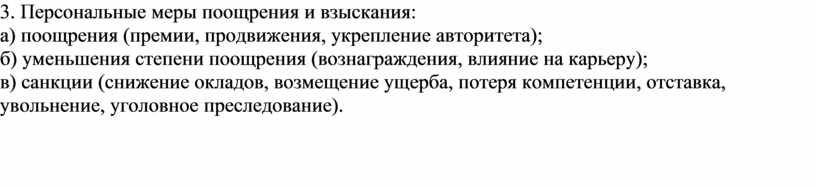 3. Персональные меры поощрения и взыскания: