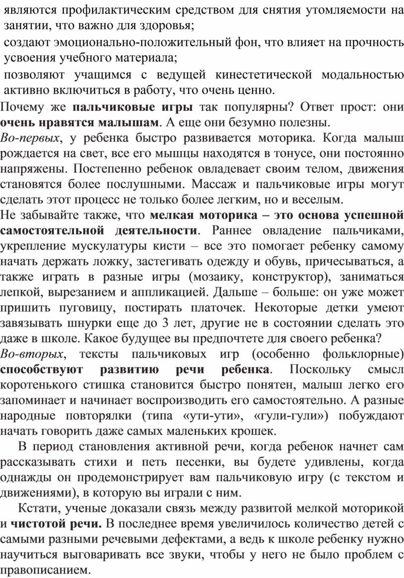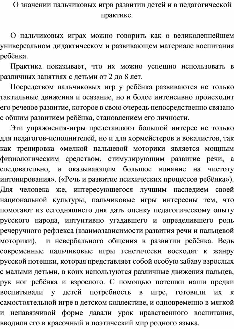 О значении пальчиковых игрв развитии детей и в педагогической практике.