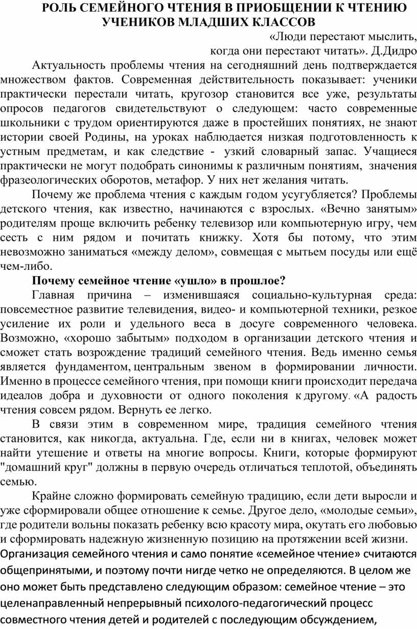 РОЛЬ СЕМЕЙНОГО ЧТЕНИЯ В ПРИОБЩЕНИИ К ЧТЕНИЮ УЧЕНИКОВ МЛАДШИХ КЛАССОВ