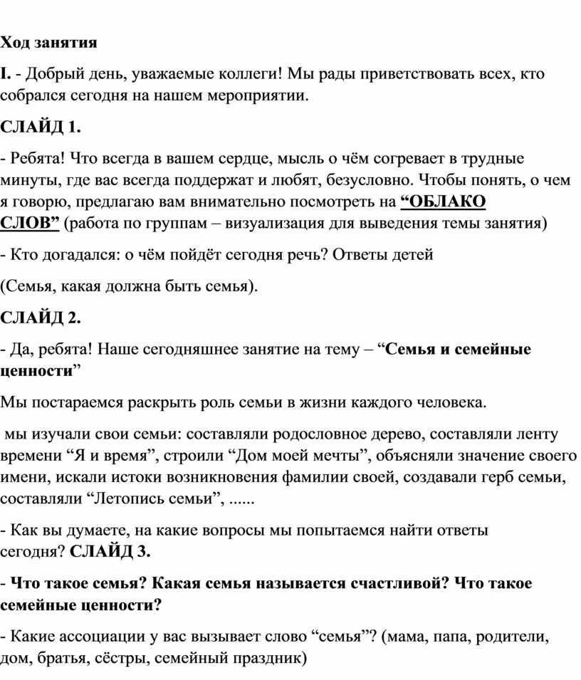 - Да, ребята! Наше сегодняшнее занятие на тему – “Семья и семейные ценности”