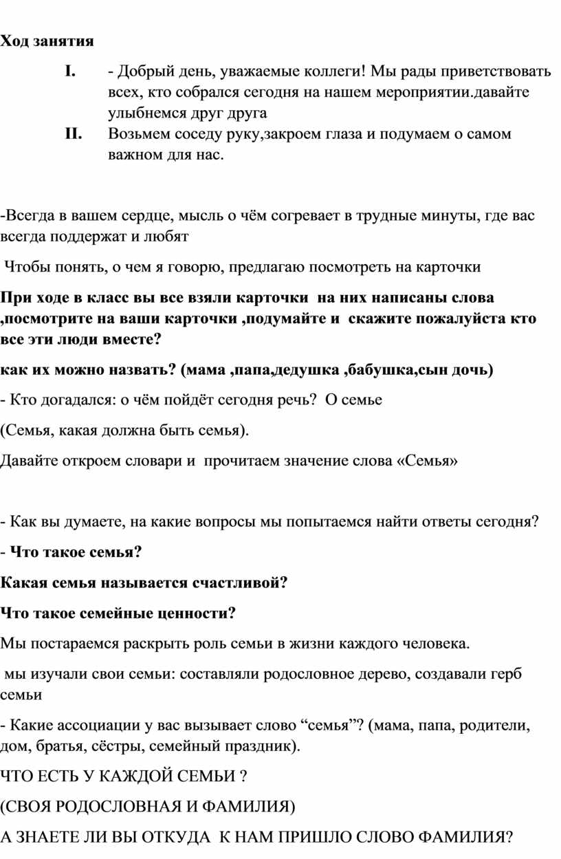 - Какие ассоциации у вас вызывает слово “семья”? (мама, папа, родители, дом, братья, сёстры, семейный праздник).