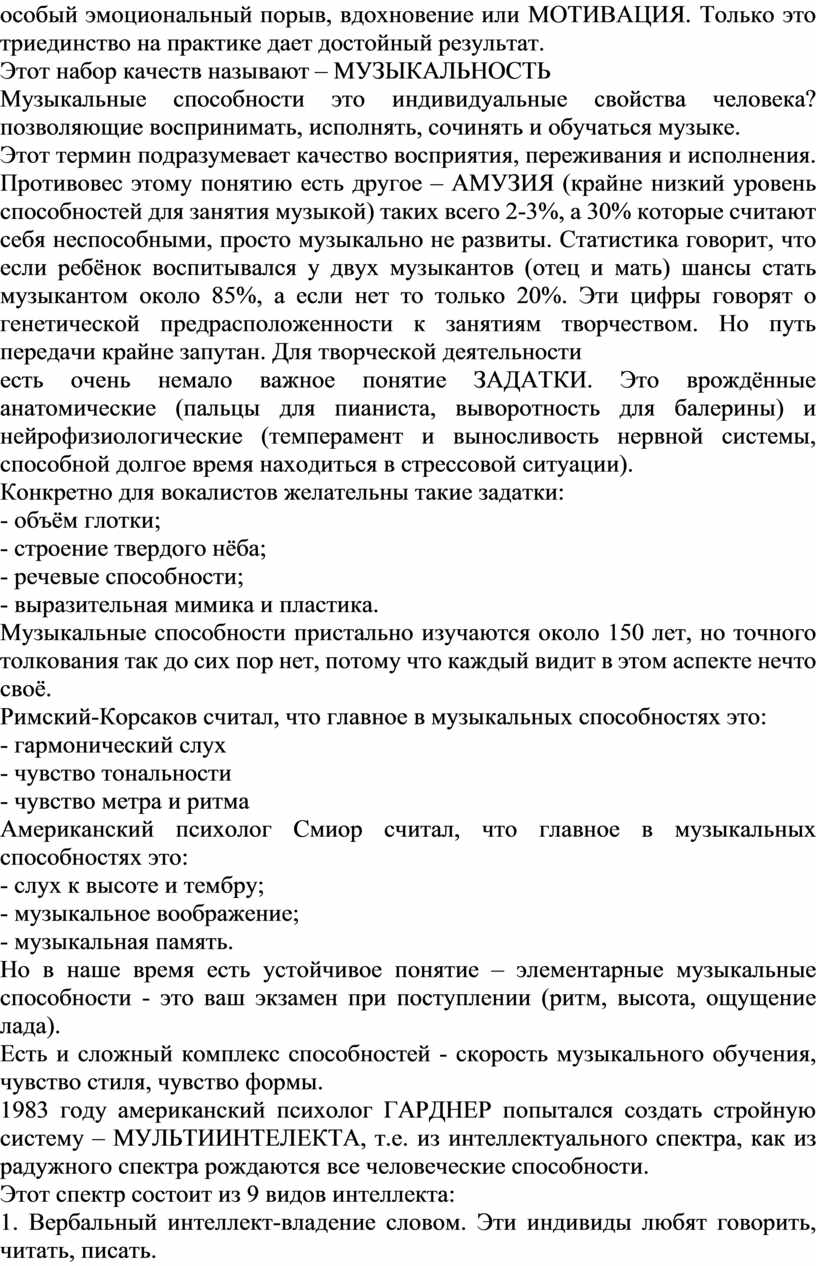 Музыкальные способности это индивидуальные свойства человека? позволяющие воспринимать, исполнять, сочинять и обучаться музыке.