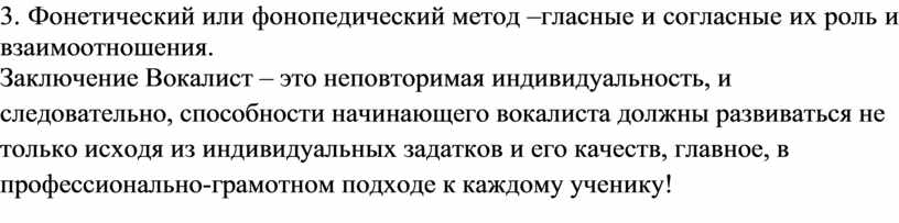 3. Фонетический или фонопедический метод –гласные и согласные их роль и взаимоотношения.
