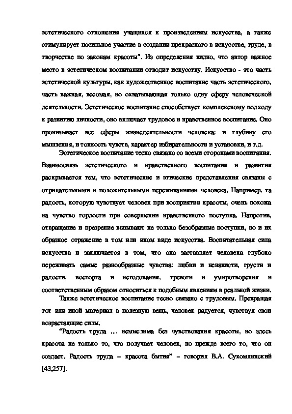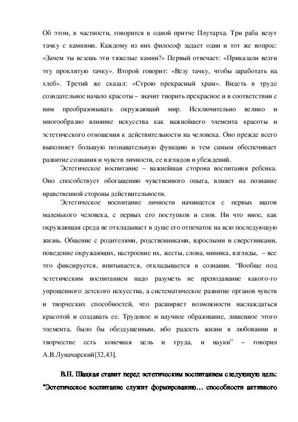 при этом придается восприятию и пониманию красоты в трудовой