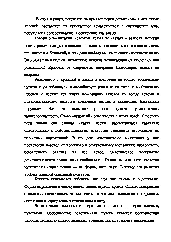 Воспитание детей дошкольного возраста средствами искусства составляет